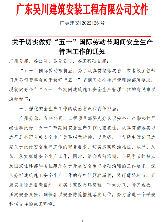 關(guān)于切實(shí)做好“五一”國際勞動(dòng)節(jié)期間安全生產(chǎn)管理工作的通知