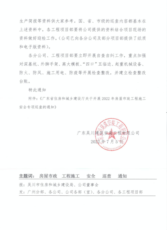 為認(rèn)真落實(shí)《住房和城鄉(xiāng)建設(shè)部關(guān)于開展房屋市政工程安全生產(chǎn)治理行動的通知》(建質(zhì)電〔2022〕19號)、《廣東省安全生產(chǎn)委員會關(guān)于印發(fā)<廣東省安全生產(chǎn)大檢查工作實(shí)施方案>的通知》(粵安〔2022〕6號)工作部署,進(jìn)一步壓實(shí)建設(shè)各方安全生產(chǎn)主體責(zé)任,治理施工安全突出問題,切實(shí)提升全省施工安全管理水平,按照我廳今年重點(diǎn)工作任務(wù)安排,結(jié)合我省城市建設(shè)安全專項(xiàng)整治三年行動有關(guān)工作實(shí)際,我廳通過政府購買服務(wù)的方式,委托第三方專業(yè)機(jī)構(gòu),開展全省房屋市政工程施工安全專項(xiàng)巡查?,F(xiàn)將有關(guān)事項(xiàng)通知如下:
